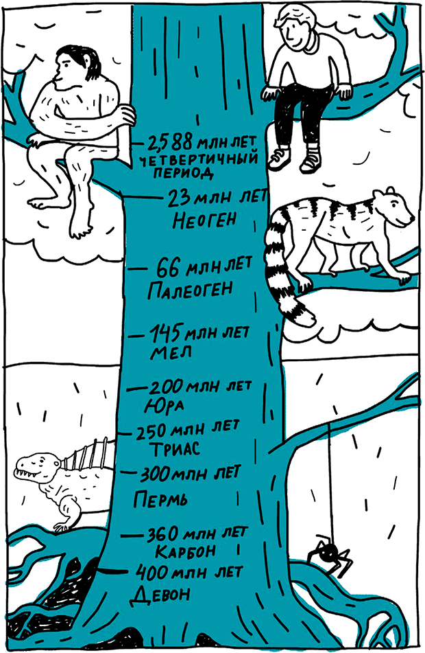 Человек – это результат процесса, который длился миллионы лет. Условия на Земле менялись так, что человек мог появиться. И он появился. Сначала на нашей планете стала возможна жизнь, и зародилась она в воде. Первые бактерии при дыхании выдыхали кислород, а не углекислый газ, как мы. И вот 800 миллионов лет назад они уже надышали его столько, что получилась кислородная атмосфера. В этих новых условиях появились крупные многоклеточные существа. Некоторые из них были похожи на сегодняшних рыб, и постепенно из них получились рыбы.
