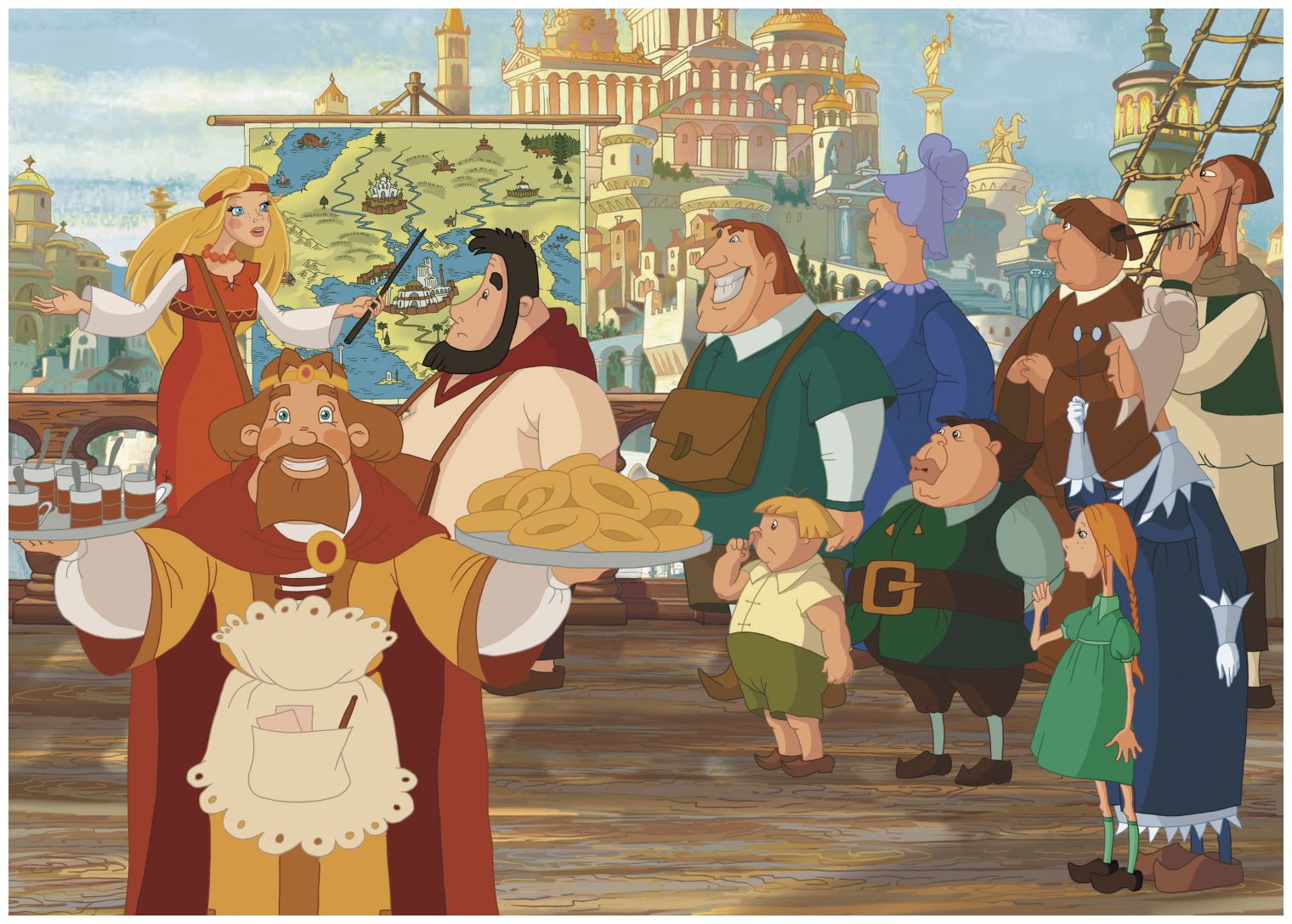 – И таким образом, – говорила Алёнушка, когда они уже подплывали к городу, – Царьград сумел сохранить себя за свою более чем тысячелетнюю историю. Сразу по прибытии с вами будет проведена обзорная экскурсия, и вы всё увидите своими глазами. А сейчас мы предлагаем вам отведать свежего чаю с баранками.