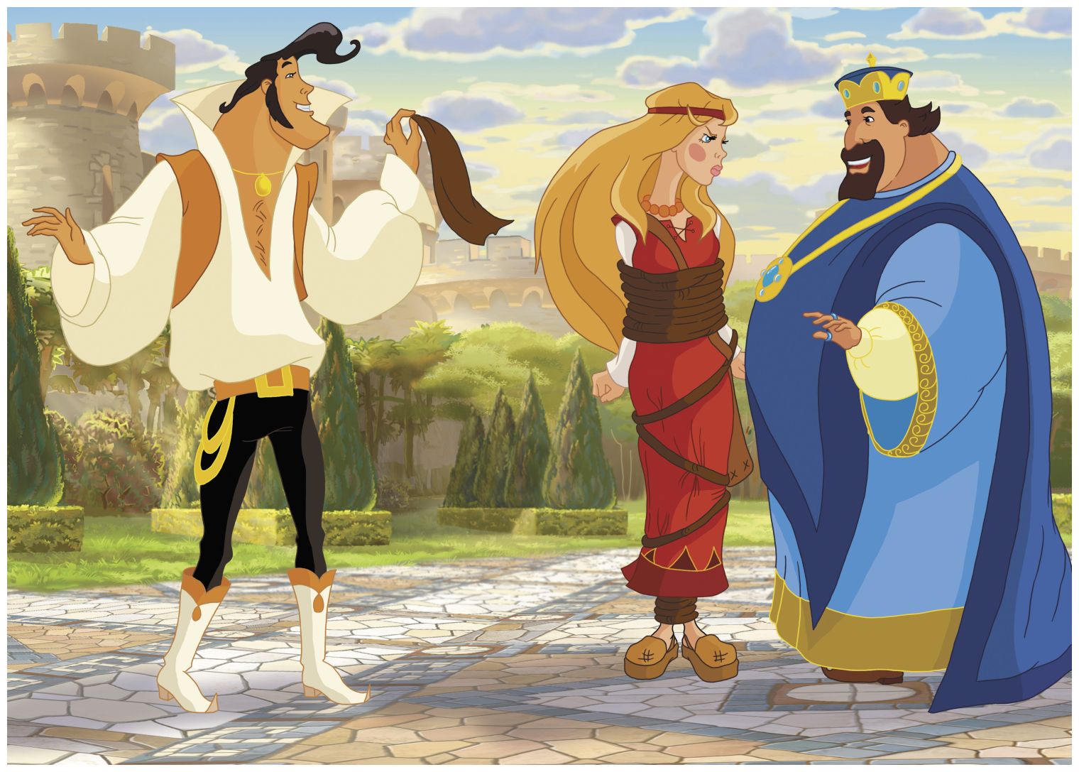 Алёнушка помогала князю преодолеть очередные ступени длинной лестницы. Наконец путешественники оказались на мощёной площадке и огляделись вокруг. Далеко на холме виднелось величественное здание с белоснежными колоннами и позолоченными крышами.