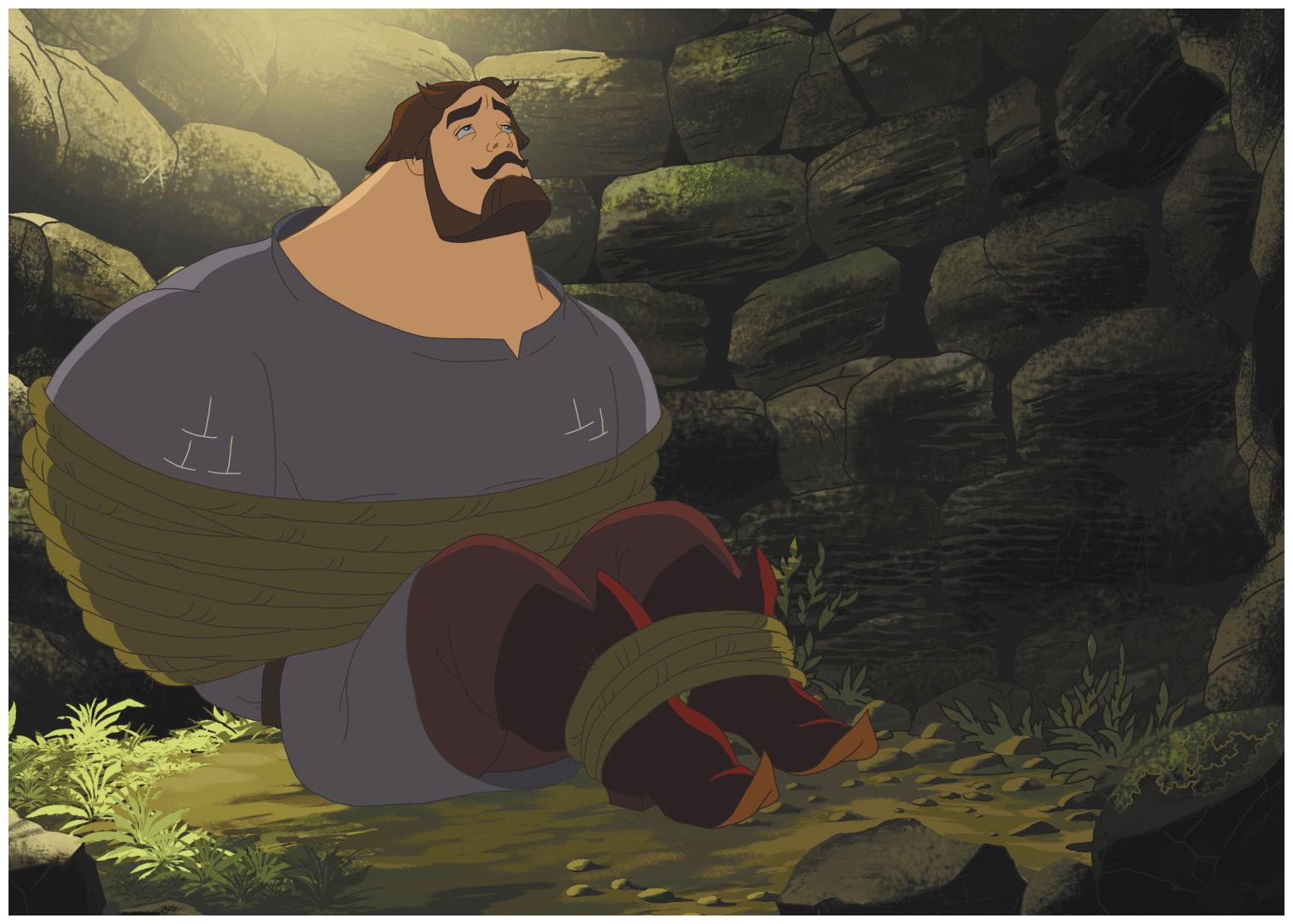 Недруги нашли верёвку и связали богатыря. Тяжело пыхтя, они подняли его и опустили в пустой колодец.