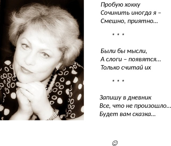 Первоначально в сборник вошли трехстрочия, собранные в интернет-блоге автора «Просчитанные слоги» ([битая ссылка] www.liveinternet.ru/users/lanet)