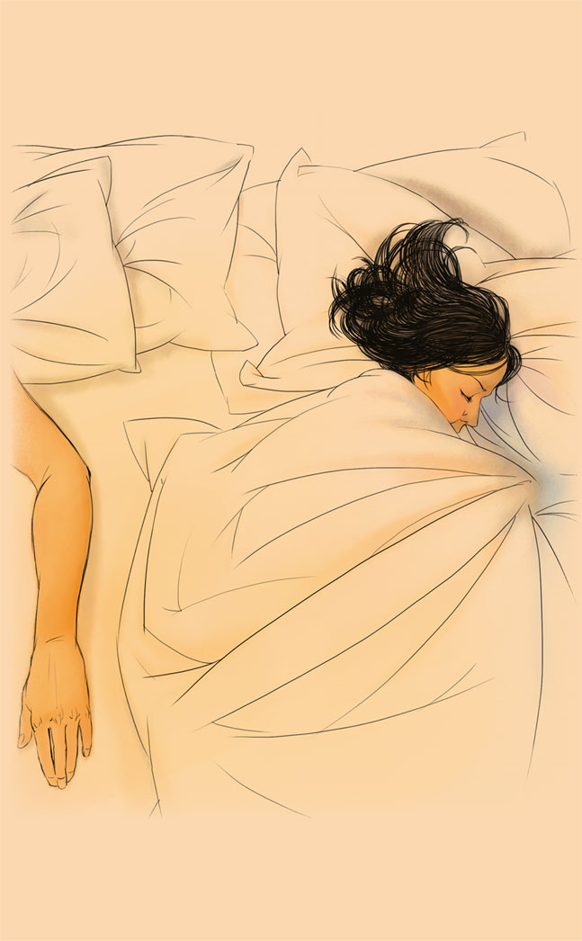 В спальне было тихо. Открыв дверь, я шепотом спросил: