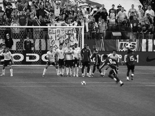 Рис. 1.9. Один из стоящих в стенке игроков держит ноги врозь, что делает ее ненадежной