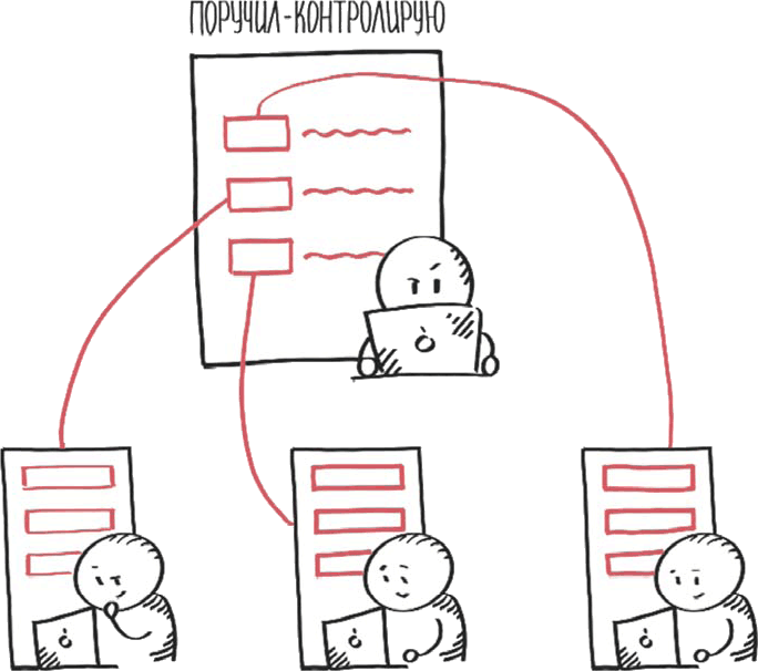 РешениеИзбегайте делегирования в нерабочих местах. Иначе подчиненный не сможет зафиксировать постановку и взять на себя обязанность. Лучше всего подходят запланированные встречи, один на один (например, регулярные планерки раз в неделю-две или стендапы). Да, вы имеете право дернуть подчиненного в любой момент, но это непрофессионально и говорит о вашем слабом планировании. А подчиненного выбивает из потока – о важности работы в потоке подробнее поговорим в главе 2. Важно оставлять время на разбор вопросов и задавать конкретные контрольные вопросы о деталях. Так вы поймете, что подчиненный все правильно понял и составил адекватный план действий. Следите, не пытаются ли делегировать на бегу вам. Введите в коллективе термин «туалетное делегирование» и пресекайте это явление.