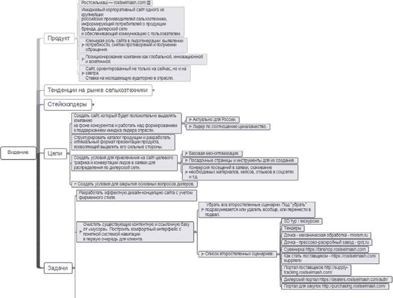 На этапе видения определяются цели и задачи проекта. Цель – чего именно хотим достичь. Увеличение конверсии, увеличение числа интернет-заказов, оптимизация работы менеджеров. Задачи – что конкретно будем делать. Семантическая разметка, фишки в юзабилити, интеграция с CRM.