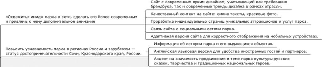 Необходимо развернуто зафиксировать суть ожидания и кратко обозначить, какие пути решения мы видим для него на этом этапе. В ходе дальнейшего анализа, в том числе после получения отклика со стороны заказчика, список решений может корректироваться. Часть идей может быть отложена до будущих этапов развития сайта.