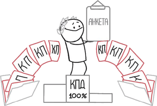 С другой стороны, я понимаю заказчиков. Вернее, менеджеров на стороне клиента, которых отправили «найти подрядчика». Они (агентства), блин, все одинаковые! Гораздо проще заполнить один раз анкету. Разослать в сотню агентств. Получить КП-шки. Распечатать, отсортировать по «Итого:». И положить их боссу на стол. Минимальная ответственность. Минимальная трудоемкость. Божественный КПД – результата можно целую кучу навалить.
