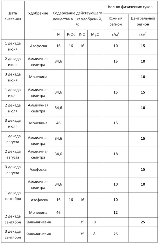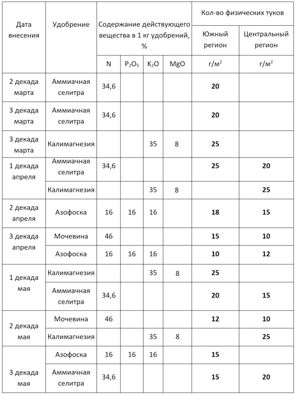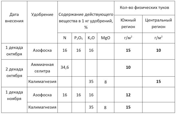 Ориентировочный план внесения минеральных удобрений представлен в табл. 3.