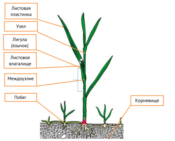 Наиболее важными видами газонных трав являются райграс пастбищный (Lolium perenne), мятлик луговой (Poa pratensis), различные виды трав родов овсяницы (Festuca). На рис. 1 показано схематическое изображение растений семейства злаков (Gramineae).