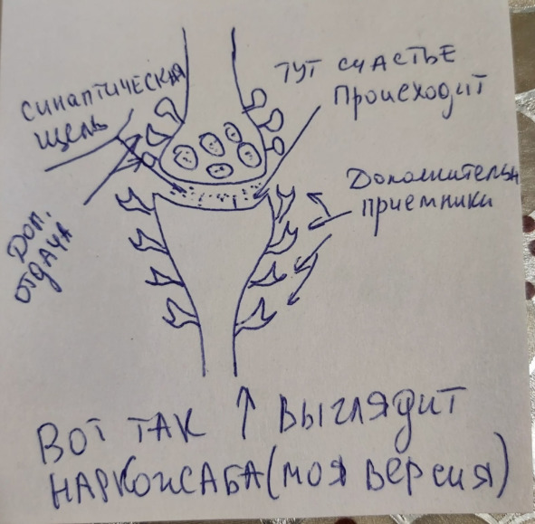 Есть у нас в голове синапсы – это место контакта 2х нейронов или нейрона и получающей сигнал эффекторной клеткой. И вот расстояние между ними называется синаптическая щель и именно там происходит чудо, ради которого мы живем – там выделяется серотонин. И этот гормон зависимый привык получать извне, в огромных количествах, раскормив в себе эту наркожабу, которая никуда в период воздержания не девается. Именно поэтому «бывших не бывает» и, если залетит хотя бы капелька в организм, если жаба почувствует – то полный разнос и возврат к прежней дозе.