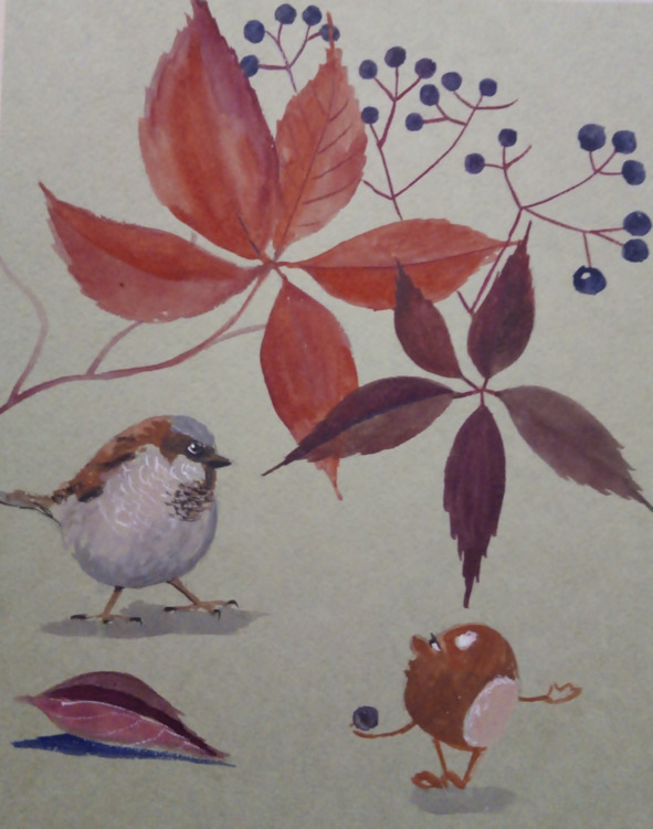 – Ясненько, новенький. Отвечаю по порядку. Снег холодный. Ничего в нём хорошего для нас воробьёв нет. Снежную ягоду я не ем, ест свиристель. Да и то не ест, а хулиганит: семена выклёвывает, а саму ягоду выплёвывает. Лучше уж я этот виноград съем. А задание у меня- вас деревья защищать от гусениц, личинок, короедов. Ладно, бывай! Готовься к зиме. – и воробей улетел.