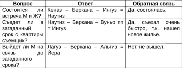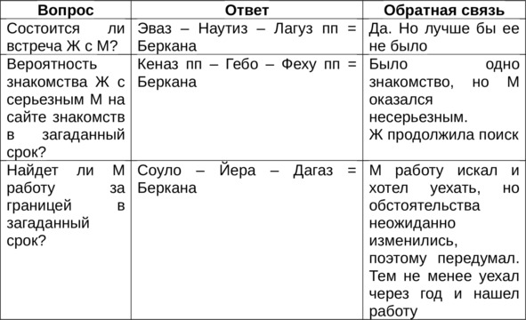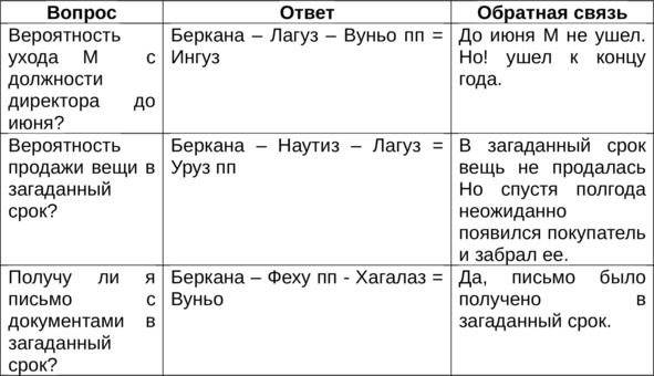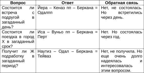 1. Очень часто триплет первой половины таких раскладов состоит полностью из необратимых рун, что в сочетании с фоновой Берканой несет ответы «нет», «нет, но позже».