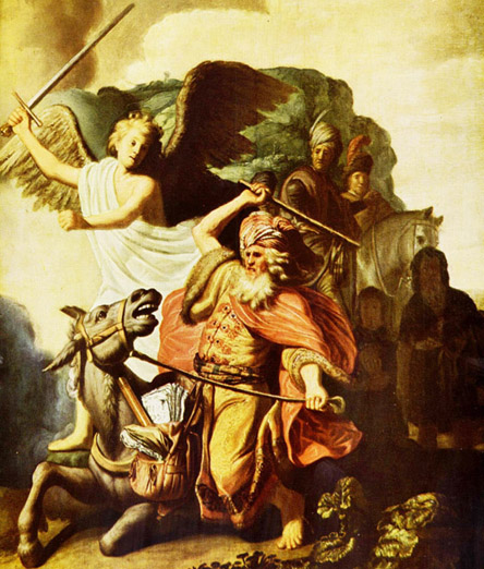 Царь моавитян Валак испугался идущих через пустыню израильтян и послал пророку щедрые дары, чтобы тот проклял израильтян. Честно отрабатывая гонорар, пророк выехал на следующее же утро на выполнение ответственного спецзадания. По дороге его ослица увидела «ангела Господня, стоящего на дороге с обнаженным мечом в руке», и прижалась к ограде. Рассерженный Валаам стал бить ее. Когда ослица попыталась продолжить свой путь, ангел вновь встал перед ней, пока наконец животное не легло на землю. Валаам снова принялся лупить ослицу.