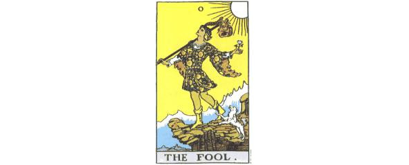 В начале своей поездки Дурак – это новорожденный – новый, открытый и непосредственный (спонтанный). У фигуры на Карте 0 руки широко раскинуты, а голова высоко поднята. Он готов охватить все, что бы ни ожидало его на пути, но при этом он забывает о крае пропасти, через который собирается перешагнуть. Дурак не думает о трудностях, с которыми он может столкнуться, поскольку он рискует изучать сразу все уроки нашего беспокойного мира.