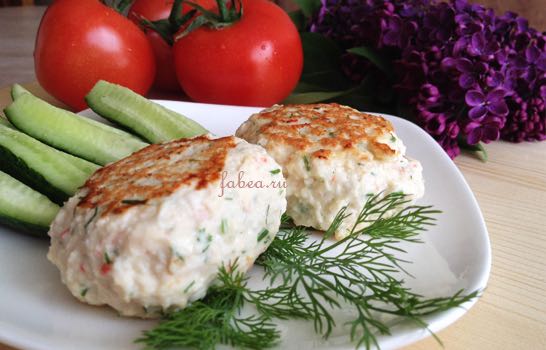 Мясо пропустить через мясорубку. Крабовое мясо натереть на терке. Добавить яйцо, зелень, лук и перемешать.