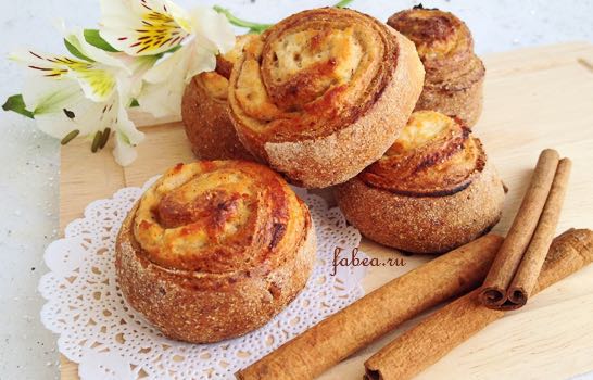 Все ингрединты смешиваем. Вымешиваем тесто руками и отправляем в холодильник на 20 минут. Тем временем готовим начинку – все ингредиенты смешиваем. Достаем тесто, раскатываем тонким, прямоугольным пластом. С одного края и до середины выкладываем начинку, закручиваем «колбаской» и режем на несколько «порций» шириной около 2 см. Получается 8-9 штук. Отправляем выпекаться при 180 градусах около 25 минут.