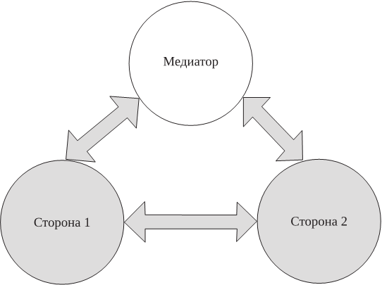 В отличие от классического посредничества, медиация – это посредничество не путем участия в принятии решения, а путем управления коммуникацией сторон в целях обеспечения их взаимопонимания. Главная задача медиатора состоит в том, чтобы создать атмосферу, способствующую ведению переговоров, снизив уровень негативных эмоций спорящих сторон (поскольку в конфликте действует правило «эмоции закрывают уши»), восстановить утраченную между ними коммуникацию, помочь сторонам осознать свои интересы, содействовать им в поиске вариантов урегулирования спорных правоотношений. Основным инструментом медиатора при этом является передача информации от одной стороны другой, донесение до каждой из сторон сути позиции, интересов, опасений, ожиданий и предложений противоположной стороны[112].