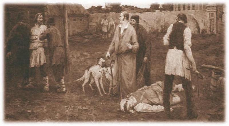 Из соседей буквально никого не было достойного внимания. Обширное поместье на много верст окружали земли бедных дворян-однодворцев, каждый из которых имел едва полтора десятка крепостных. Дружба с ними, несомненно, была бы мезальянсом. Потому наш помещик жил затворником и только изредка навещал дальнего соседа, генерала Евграфа Арсеньева. Впрочем, генерал был весьма скучной персоной, способной говорить только о славе гусаров, к которым он когда-то принадлежал. К псовой охоте Измайлова было приставлено в Хитровщине сорок с лишком человек собственных его крепостных, а также и вольных людей по найму (тридцать девять псарей – из них трое наемных – да шестеро наварщиков и щенятников)» Барин заставлял кормящих матерей выкармливать грудным молоком своих щенят.