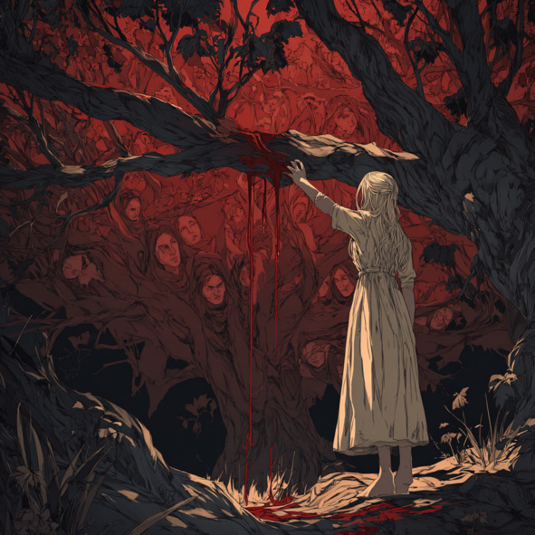 Они ехали долго. Сквозь леса, где деревья были как сгорбленные старцы, облитые сумерками. Сквозь поля, на которых не росло ничего, кроме теней. Сквозь пустые деревни, где окна были замазаны кровью или воском. Мир затаился, как зверь после раны. И всё молчало. Аэлия сидела, прижавшись к холодной стенке повозки. Под пальцами – ткань, похожая на кожу. Всё здесь было живым, как будто дышало, жило своей собственной волей. Её пальцы дрожали. Ногти вонзались в ладони. Но она молчала. Она не плакала. Она больше не была той девочкой из монастыря. Когда повозка остановилась, небо было уже чёрным, как вытекшая кровь. Луна – тонкая, острая, как клинок.