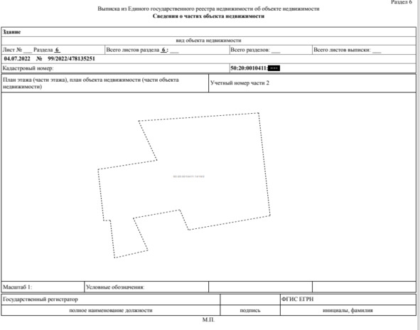 И с кадастровым учетом конкретной части объекта ничего не меняется. Ниже пример графического описания учтенной части здания по тому же объекту в Московской области (из выписки 2022 года). Кто и что может понять из такой информации без получения дополнительных документов, запросов дополнительной информации и пояснений, не понятно.