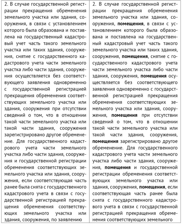 Поскольку в данной работе мы ведем речь только о договорах аренды в отношении зданий, сооружений и/или помещений в них (аренда земельных участков в настоящей работе не рассматривается), то для нас представляют интерес только две части указанной статьи: ч. 2 и ч. 5. Для удобства еще раз приведем ниже обе редакции Закона и отметим внесенные изменения полужирным шрифтом: