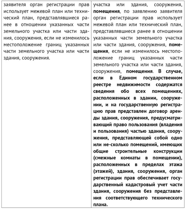 Наиболее значимые изменения в Закон о регистрации, оказывающие существенное влияние на порядок заключения договоров аренды и их последующей регистрации, были внесены в ст. 44 Закона о регистрации «Особенности осуществления государственного кадастрового учета части объекта недвижимости и государственной регистрации обременений объекта недвижимости».