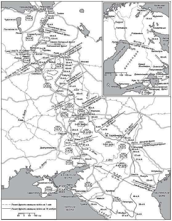 В директиве на проведение летней кампании 1942 г. говорилось, что операция «Блау» предусматривает широкое наступление только на южном участке Восточного фронта в сторону Дона, Сталинграда и нефтяных месторождений на Кавказе (см. карту 2).