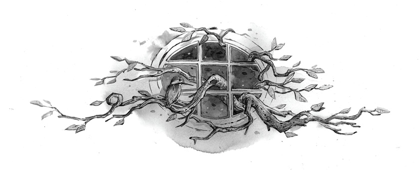 Я начала своё расследование с поиска стихотворения в Интернете и, как ни странно, почти сразу нашла блог, в котором те же четверостишья публиковались тогда же, когда и я получала открытки. Блог был оформлен со вкусом, но в старомодном стиле и несколько мрачноват. К странным записям прилагались красивые, талантливо исполненные, но такие же странные картинки. Особенно запомнилась одна: угол комнаты; на одной стене деревянная дверь, другая исписана не то стихами, не то строками песен: крупные буквы, мелкие, печатный шрифт, каллиграфия – всё вперемешку; на двери нарисовано (или выжжено?) дерево с могучим стволом, но элегантными ветвями с редкими-редкими причудливыми листьями; ветви расползались по стенам и обвивали письмена. Удивительная, завораживающая и немного пугающая картинка. Я так и не поняла, рисунок это или фотография.