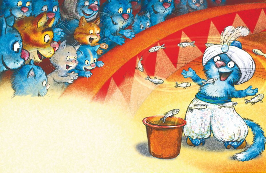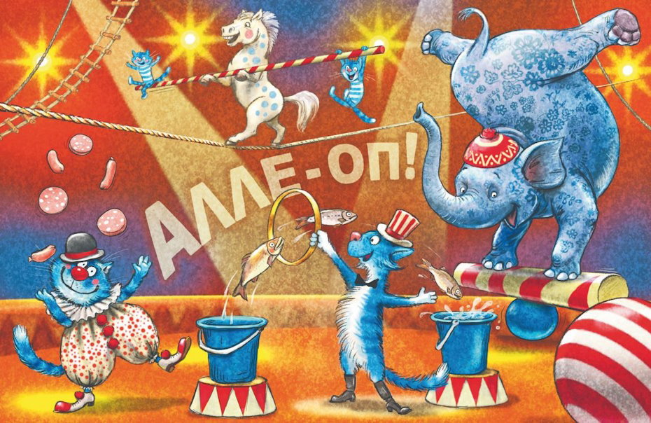 Котофеевцы отхлопали все ладоши. Было на что посмотреть! Акробаты ходят по канатам, жонглируют сервелатом. Клоун чихает с оглушительным грохотом, котофеевцы на пол падают от хохота. У фокусника над головой летают шпроты с плотвой.