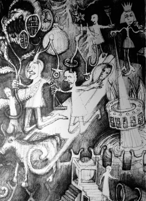 В автобус села женщина в темных очках. У нее утиный клюв. Ходят опоздавшие провокаторы и выкрикивают самые бредовые свои идеи. Интеллигенты молча стоят на безопасном расстоянии. В конце концов, это их святое право – умолкнуть и отойти подальше. Провокаторы норовят убить любую безобидную тварь, обмотанную медицинскими бинтами. В руках у них – крепкие тренировочные молотки, зубы их оскалены.