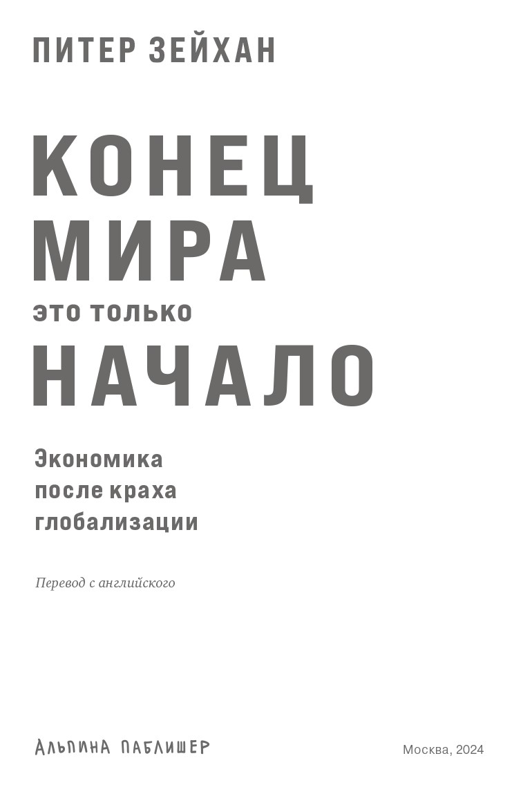 Главная задача этой книги не в том, чтобы просто показать глубину и масштабы перемен, которые затронут все отрасли экономики привычного мира. Я пишу не просто об очередном переломном моменте в истории и не о том, как именно миру придет конец. Задача этой книги – рассказать о том, каким станет мир после того, как изменятся правила игры. Каковы параметры вероятного будущего? Какой будет география успеха в деглобализированном мире?