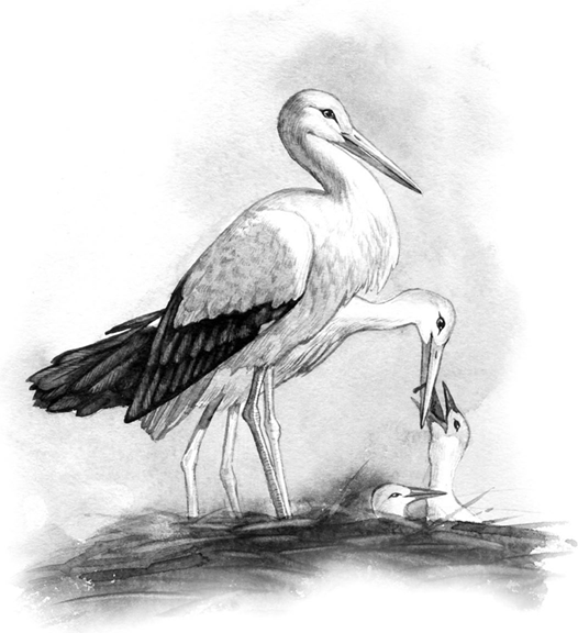 Те из читателей, которые выросли и живут в деревне или малолюдном поселке, конечно, видели аистов и их гнезда. Не заметить их нельзя. И птицы красивые, крупные, да и гнезда с огромное колесо полутораметрового диаметра. Кстати, о колесах: если кто-то из хозяев хотел, чтобы у него во дворе поселились аисты, он водружал на столб старое колесо или просто крепил его на крыше сарая. Оно служило основанием для гнезда. Аисты натаскают на колесо разноразмерных веточек, устелют чем-либо мягким лоточек для новорожденных аистят и будут прилетать весной к своему «дому», поправляя его и надстраивая, из года в год. Это о белых аистах. Они людей любят и рядом селятся всегда охотно, а вот черные аисты нелюдимы и отшельники. Живут только в глухих лесах, там, где о человеке ни слуху ни духу. Они, наверное, не знают, что с древнейших времен человек был покровителем и защитником и самих аистов, и гнезд их.