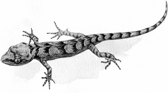 Внешность гекконов можно описать несколькими словами. Длиной невелик, 8–9 сантиметров вместе с хвостиком, глазаст, большеголов, крупночешуист. Ножки тоненькие, очень цепкие; по цвету серый. Это если очень коротко, а для любителей более детальных характеристик можно и подробнее. Глаза у гекконов большие, без век, с вертикально поставленными зрачками, выражение их несколько изумленное, а по цвету они, как рубины, красные и нуждаются в постоянном уходе. Геккон, понятно, знает об этом и часто протирает их, как тряпочкой, собственным языком. Со стороны создается впечатление, что он никак не может поверить чему-то только что увиденному. Удивляется, и потому вынужден постоянно протирать свои круглые глазища. Рот у гекконов изогнут так, будто он постоянно застенчиво улыбается, и, как ласковая собачка, виляет или дергает хвостиком. Чешуйки на хвостике трутся друг о друга, издавая то ли шелест, то ли звуки, похожие на затаенный шепот. В наличии у гекконов и голосовой обмен информацией. При этом слышится нечто похожее на птичью трельку: «пик… пик… пик-и-и-и». Одет геккон в серые чешуйчатые «штаны» и «рубаху», причем этот «костюмчик», как у непоседливых мальчишек, быстро снашивается и его за сезон приходится менять раза три-четыре. Меняя, геккон берет сам себя лапками за плечи и за шиворот и стаскивает старую кожу через голову. Старается так, что из кожи вон лезет, а потом берет и съедает старую одежку. А зачем она ему, если уже есть новая и красивая.
