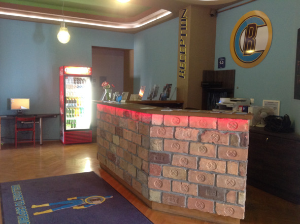 Everywhere, the superman is depicted as a symbol of the hostel with the image on the shield of the letter “B”, meaning “Budapest”.
