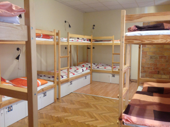 Bed in a 10-bed room, designed for both boys and girls – a good option for a budget tourist.