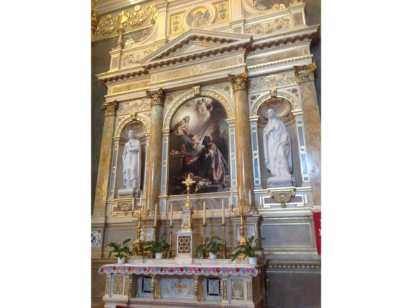 Inside you will see an ornate decorated with stucco molding and mosaic, marble-covered walls and columns.