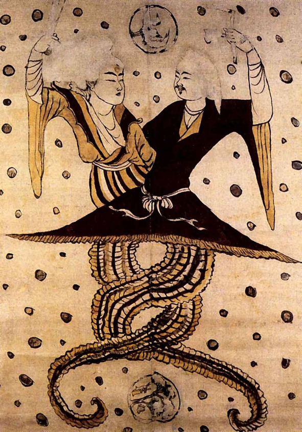 Also, Chinese believed their ancient civilization was established by an amphibian species with a human head and a tail of a fish or a serpent, which was named FuXi and lived 3000 years B.C.His sister was Nu Wa (Nügua), she had a serpent tail, too.