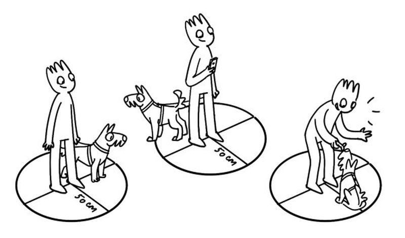 Вводные данные прежние: мягко сократили поводок, присели или просто остановились во время прогулки, мысленно очертили полукруг перед собой.