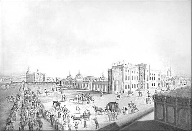 Картина «Вид Аничкина дворца и Невского проспекта в начале царствования Екатерины II», написанная по мотивам рисунка М.И. Махаева