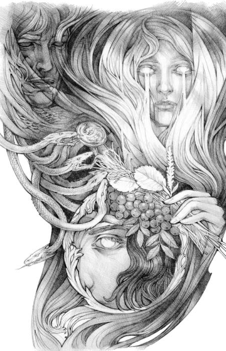На сей раз Игрейна сразу поняла, что видит Послание, а не человека из плоти и крови. Ни одна живая душа – и уж конечно же не Утер Пендрагон! – не проникла бы в ее бдительно охраняемые покои, любого чужака тут же заметили бы и остановили. Утер кутался в тяжелый плед, а руки его до самых плеч оплели змеи, точно так же, как в ее видении про Атлантиду, – по ним-то молодая женщина и догадалась, что это не сон. Только на сей раз то были не золотые торквесы, а живые змеи: они приподняли головки и зашипели, но Игрейна ничуть не испугалась.