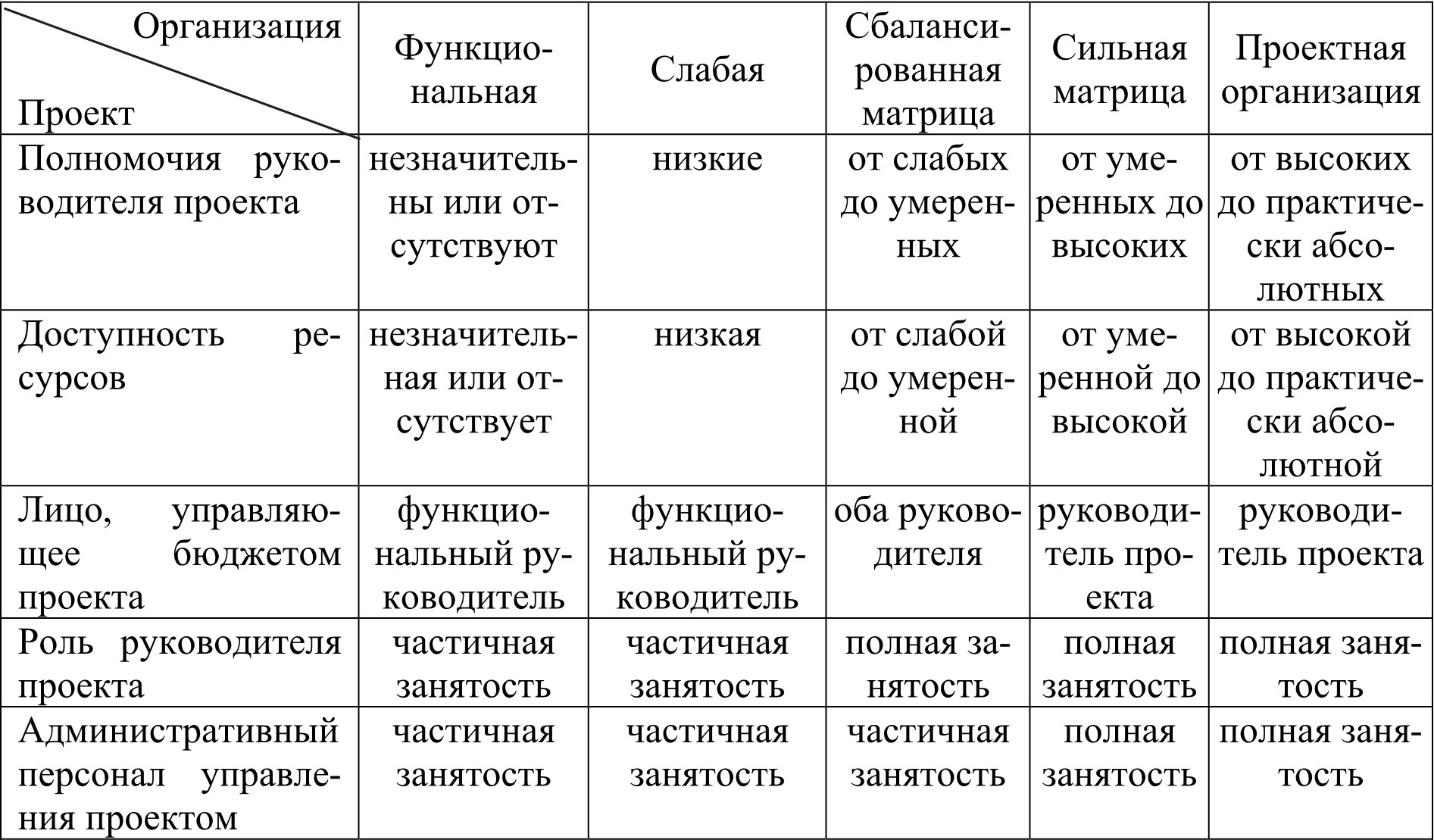 Однако существуют организации, в которых проекты составляют основу их деятельности – например, инжиниринговые, строительные компании и др. Различные варианты включения управления проектами в организационную структуру представлены в табл. 1.4.
