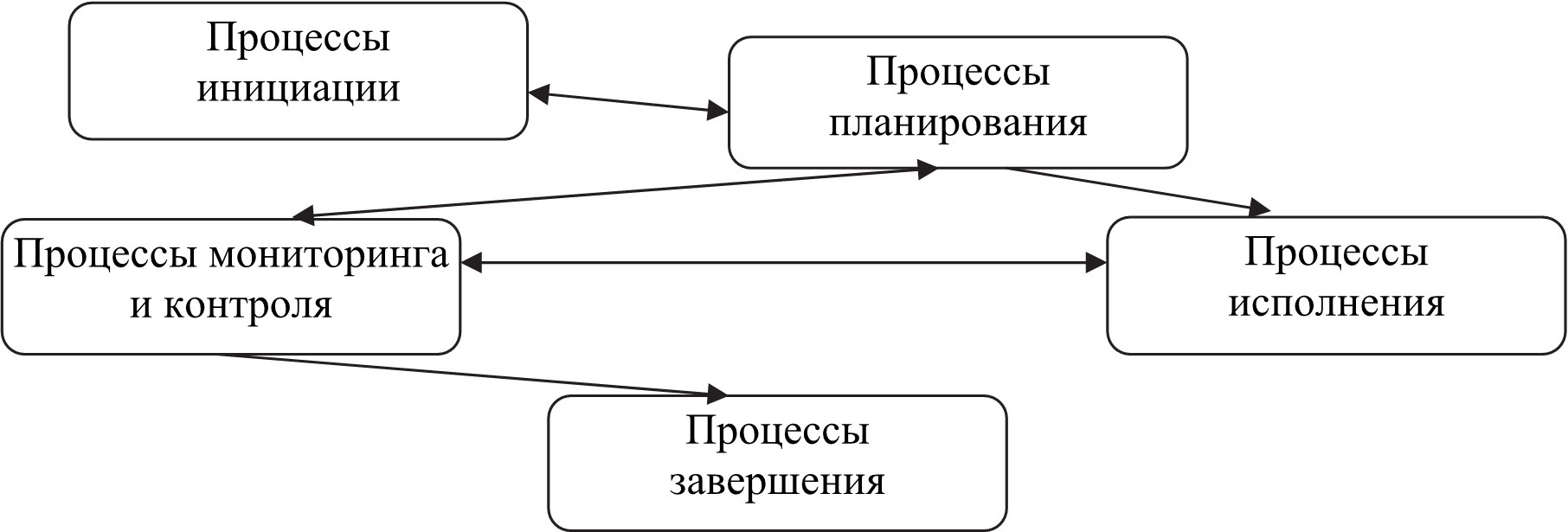 Весь проект или отдельную его фазу можно представить в виде модели взаимосвязи групп процессов (рис. 1.4).
