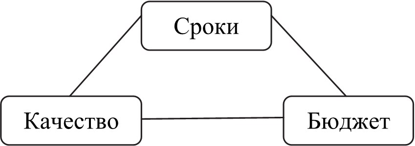 Цель проекта отвечает на вопрос, что будет сделано по итогам реализации проекта. Как правило, цель проекта имеет три характеристики – сроки, бюджет и качество. Эти три измерения взаимосвязаны между собой и формируют так называемый треугольник проекта – направления, по которым менеджер проекта обязан поддерживать баланс: слишком большое внимание к качеству проекта ведет к увеличению затрат времени и денег на проект; тогда как чрезмерная спешка или экономия способны негативно повлиять на качество продукта проекта (рис. 1.5).