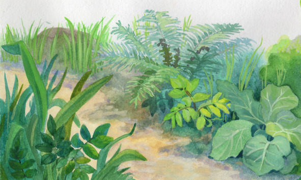 Путь для Гир-Лили предстоял нелёгкий. Надо было пробираться через заросли травы и тростника, казавшиеся храброму гному огромным лесом. Пришлось идти болотом. Прежде чем сделать шаг, приходилось проверять – твёрдая ли под ногами земля, а только потом продвигаться вперёд.
