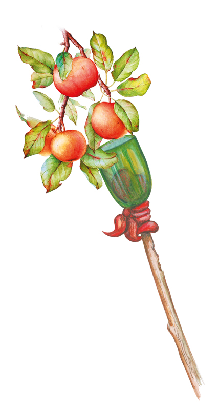 – Можно сделать специальное приспособление из ваших пластиковых бутылок, это хороший ресурс, – сказал Дедал. – Обрезать бутылку, насадить её горлышком на длинную палку, поднять и поместить в эту «чашу» яблочко. А потом покрутить – оно и оторвётся!