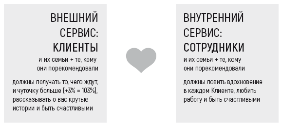 Еще раз посмотрите на определение сервиса. Из него следует, что при формировании сервиса нам с вами необходимо направить усилия на две аудитории – это Клиенты и сотрудники. Давайте договоримся: все, что мы делаем для Клиентов, – это внешний сервис, а для сотрудников – внутренний.