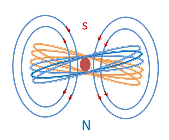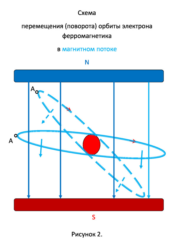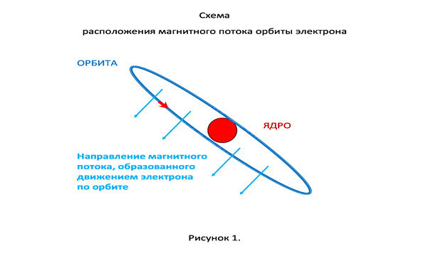 Спин – это вращение электрона вокруг своей оси, но в том-то и дело, что учебники по физике утверждают, что подавляющее их количество попарно вращаются в разные стороны, и лишь небольшое их число не имеют пары. О чем это говорит? Это говорит о том, что магнитные потоки, навстречу вращающихся в паре электронов, компенсируют друг друга. Те малочисленные, оставшиеся без пары электроны, не могут создать мощный магнитный поток, даже если они ориентированы в нужную сторону. Противоречие явное. Что же происходит с электроном? Если спин не является источником магнитного потока, то, как этот поток образуется? Представим себе орбиту электрона. Не важно, что это корпускула или растянутая по орбите масса. По орбите движется электрон, а мы знаем, что движение электрона – это электрический ток. Если есть ток, то по правилу буравчика образуется перпендикулярно направленный магнитное поток.