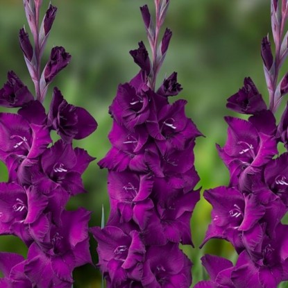 1. Гладиолус болотный (Gladiolus palustris, G. Boucheanus, G. Pratensis) имеет тонкий стебель 30-60 см и небольшие темно-пурпурные цветки (5-8 см) с «ноготком» на нижних лепестках. Этот вид используется для украшения водоемов и альпинариев. Цветение летнее, на зиму требует укрытия.