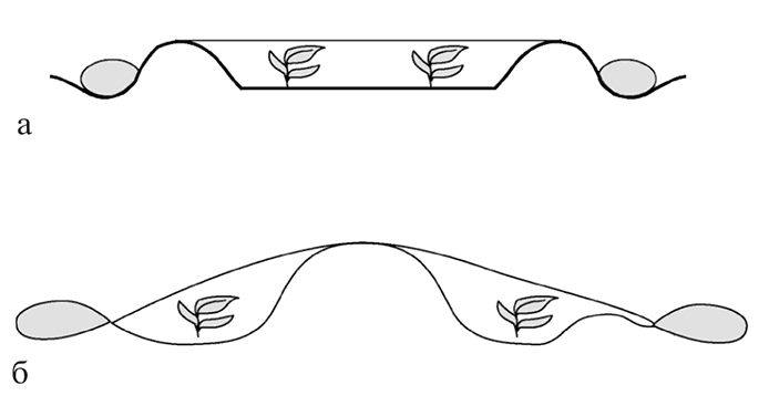 Рис. 1. Бескаркасные укрытия: а – на гряде; б – на гребне.