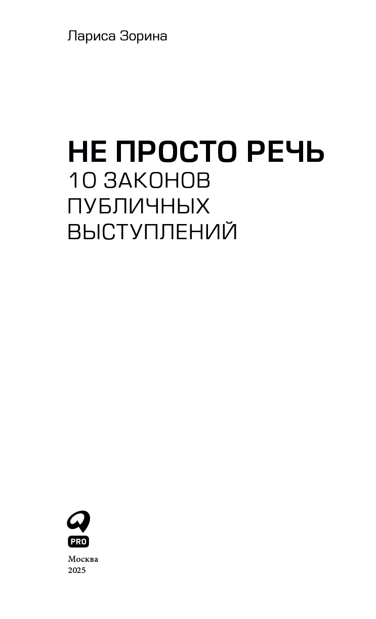 Галина Кушнарева,журналист, тренер по публичным выступлениямОчень рекомендую прекрасную книгу Ларисы Зориной тем, кто ценит силу слова, кто готов добиваться результатов благодаря правильной речи. С этой книгой вы сможете начать самостоятельно изучать основы публичного выступления. В книге есть многочисленные примеры из практики автора, которые вдохновляют строить речь грамотно не только для выступления, но и в повседневной жизни.